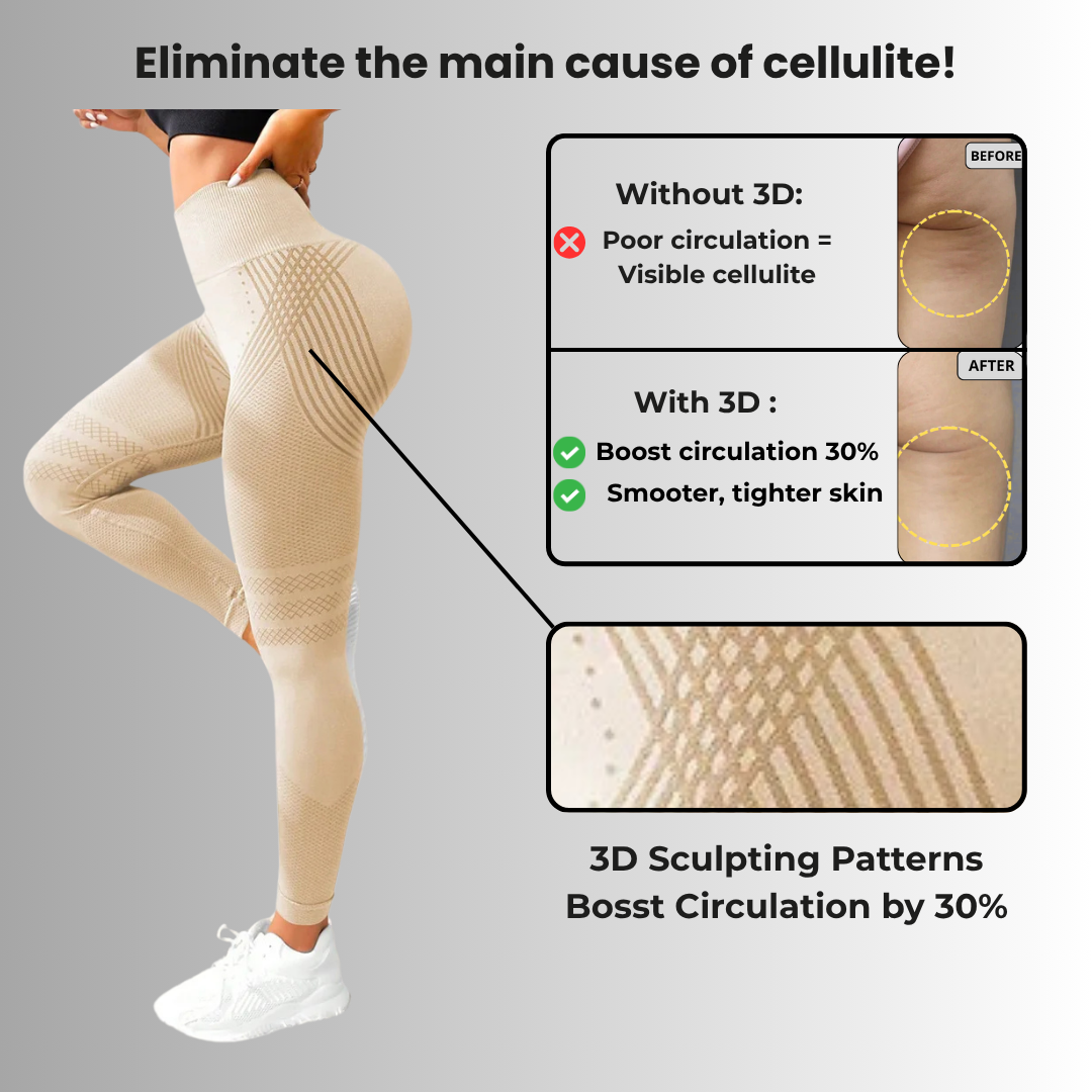 Our 3D anti-cellulite legging uses smart compression zones to boost circulation and visibly reduce cellulite with every wear. Its unique micro-massage fabric smooths and firms your skin — while shaping your curves for a more toned look. No effort, no chemicals — just slip it on and let the results speak for themselves.