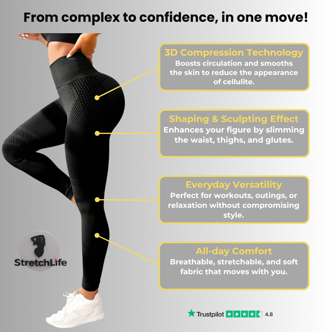 The StretchLife 3D Legging combines style and comfort while sculpting your figure. Its 3D compression technology reduces the appearance of cellulite, and its breathable fabric keeps you comfortable from workouts to everyday wear.